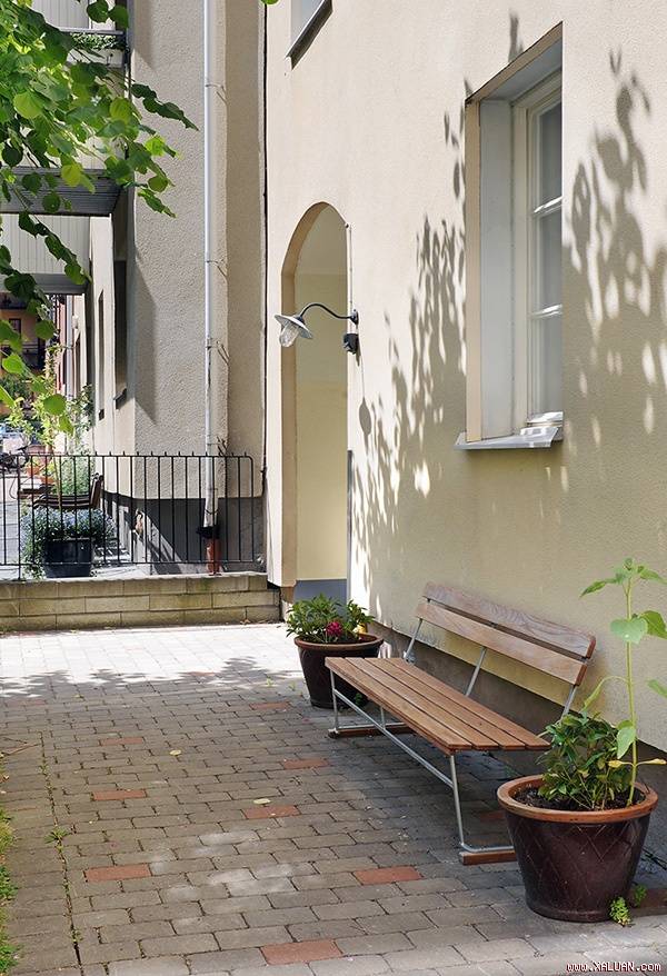 Lối vào thoáng đãng, mát mẻ của khu chung cư, nơi có căn hộ nhỏ xinh xắn 49m2.