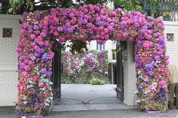 Hoa bó tròn với kích thước lớn treo lơ lửng, tạo cảm giác bồng bềnh, mộng mị.