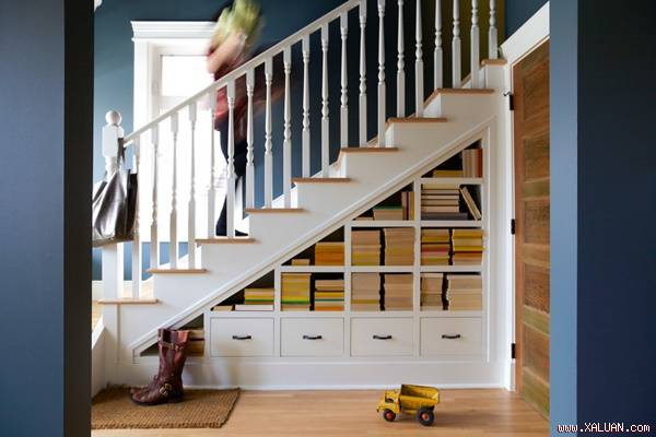 Tủ để đồ dạng mở này là giải pháp vừa rẻ vừa đẹp để đặt những đồ vật yêu thích trang trí cho ngôi nhà của bạn. Dựa vào hình dáng của cầu thang, bạn hãy chọn lựa một chiếc tủ đựng đồ phù hợp.